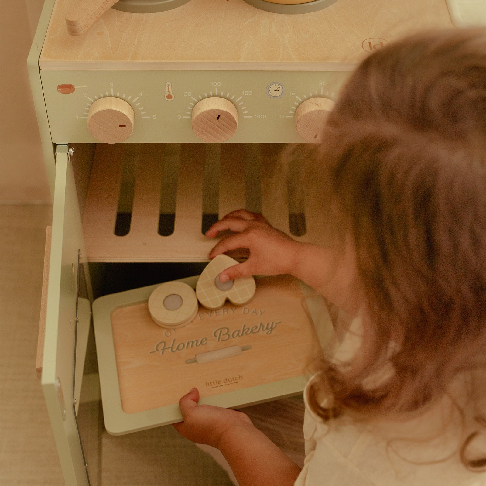 Whisk, roll and sprinkle your way to playtime fun! This wooden baking set includes everything little chefs need to make their own tasty treats.